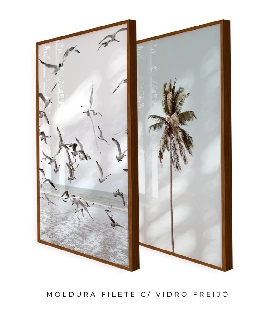 • Impressão: ao ser comprada com moldura caixa, a obra é impressa em vinil fosco com tecnologia HP Látex (tinta ecológica), e aplicada em MDF de 3 mm (especial para quadros). A peça fica resistente, bonita e fácil de limpar, mesmo se você escolher sem vidro.
