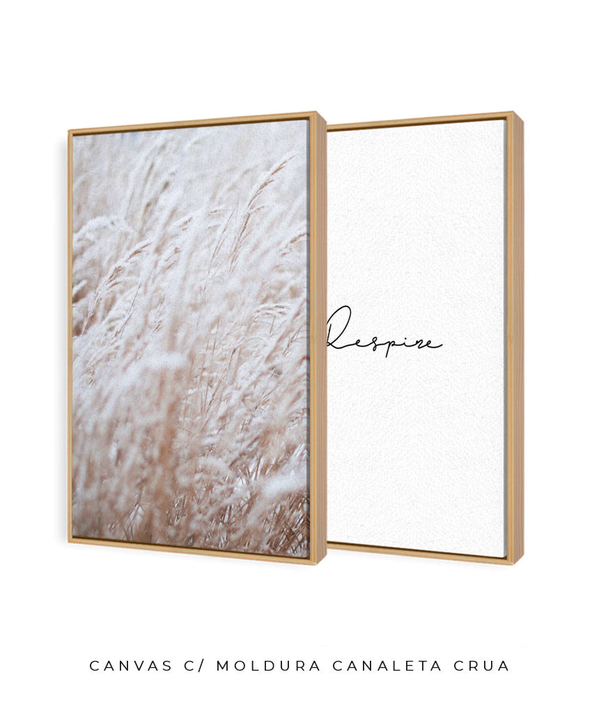 • Como uma tela de pintura. A obra é impressa no Canvas Original 100% algodão, esticada em chassi de madeira (moldura interna) e envolta por moldura canaleta de 0,7 cm de espessura (olhando de frente), 4,5 cm de profundidade (olhando de lado) e 0,75 cm de espaço de canaleta (o que dá o efeito flutuante).