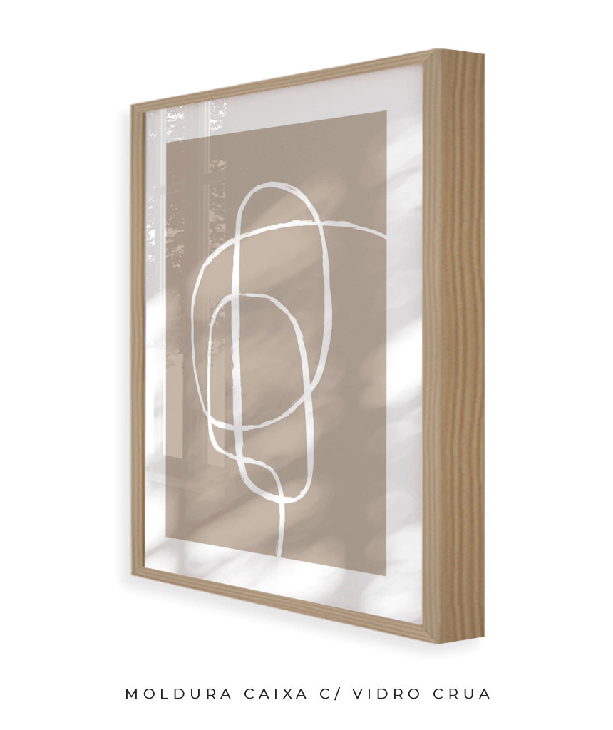 Moldura caixa é aquela moldura padrão (a mais comum de ser vista emoldurando gravuras e pôsteres). Tem 2,0 cm de espessura (olhando de frente) e 3,0 cm de profundidade (olhando de lado). Ideal também para quem deseja esconder quadros de energia elétrica.