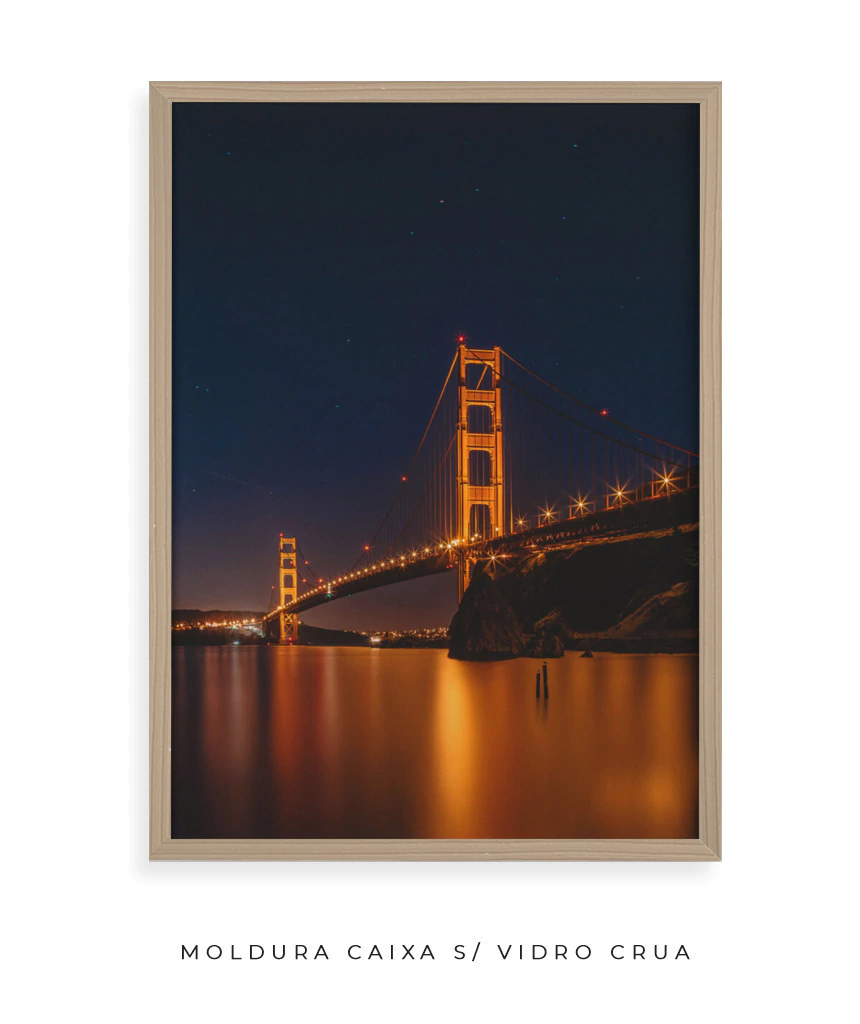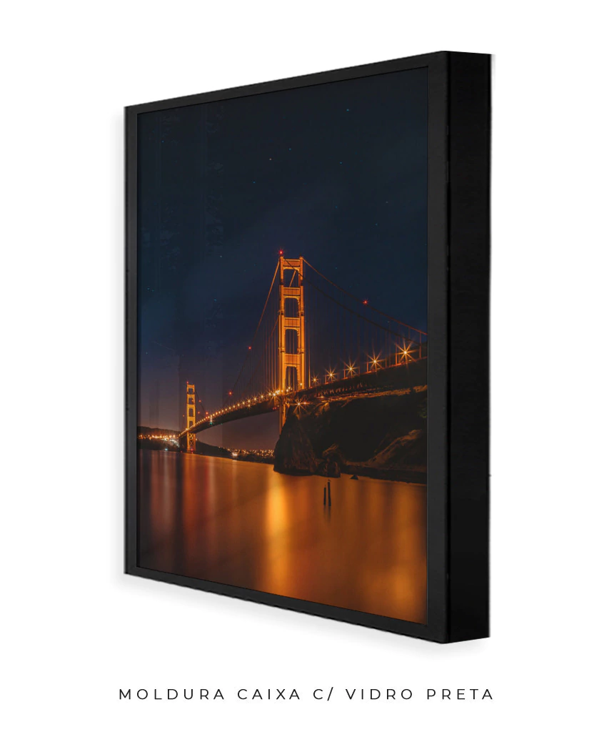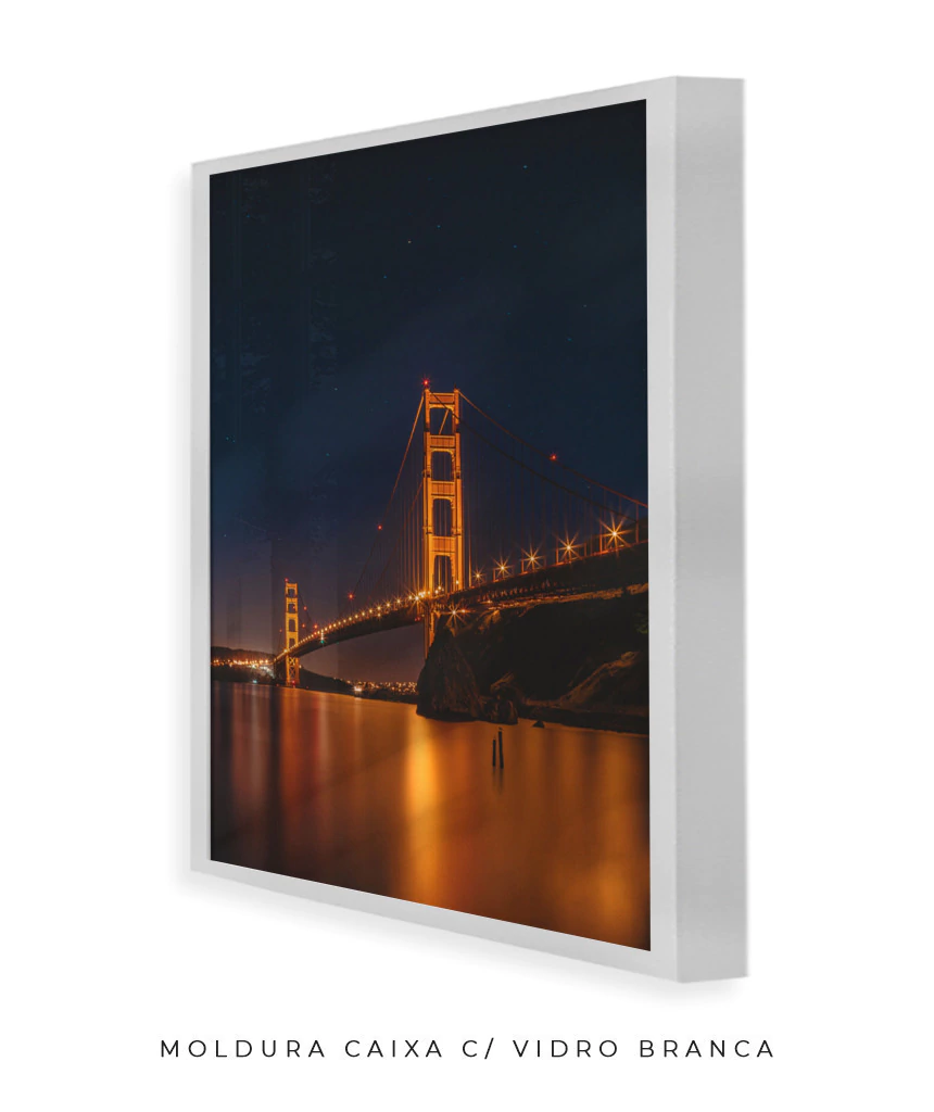Moldura caixa é aquela moldura padrão (a mais comum de ser vista emoldurando gravuras e pôsteres). Tem 2,0 cm de espessura (olhando de frente) e 3,0 cm de profundidade (olhando de lado). Ideal também para quem deseja esconder quadros de energia elétrica.