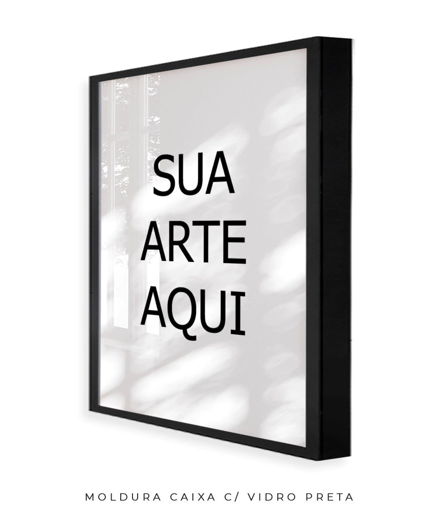 Moldura caixa é aquela moldura padrão (a mais comum de ser vista emoldurando gravuras e pôsteres). Tem 2,0 cm de espessura (olhando de frente) e 3,0 cm de profundidade (olhando de lado). Ideal também para quem deseja esconder quadros de energia elétrica.